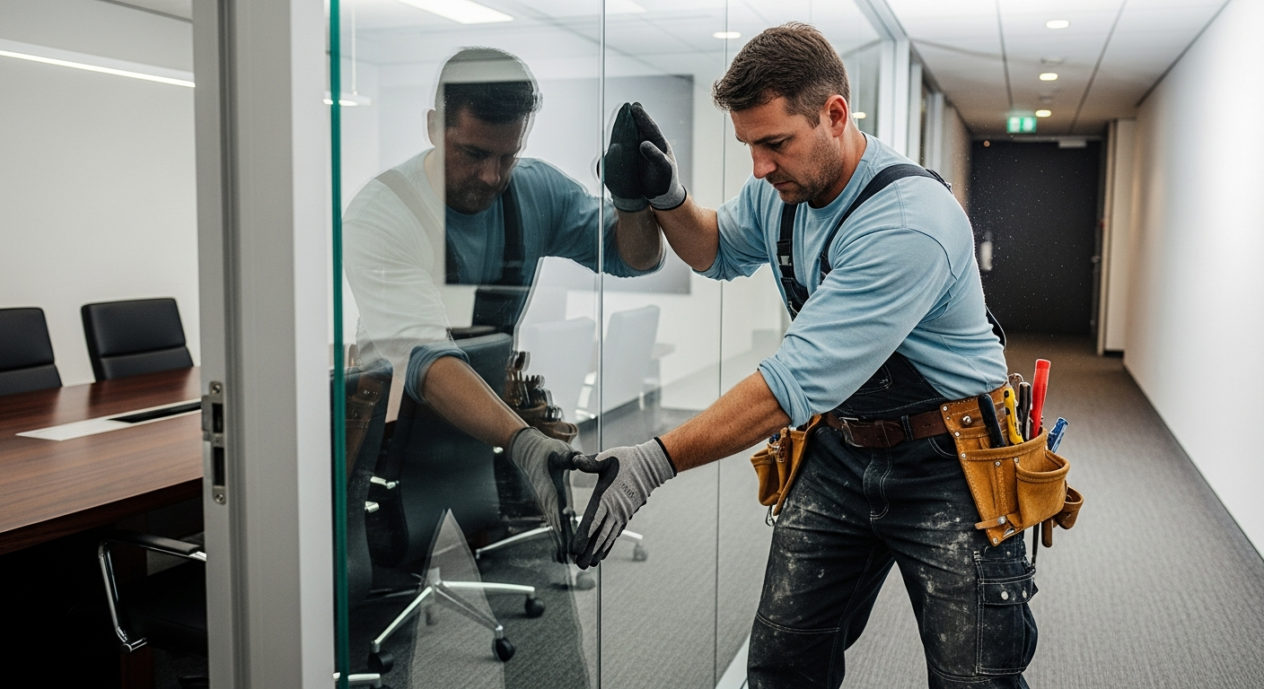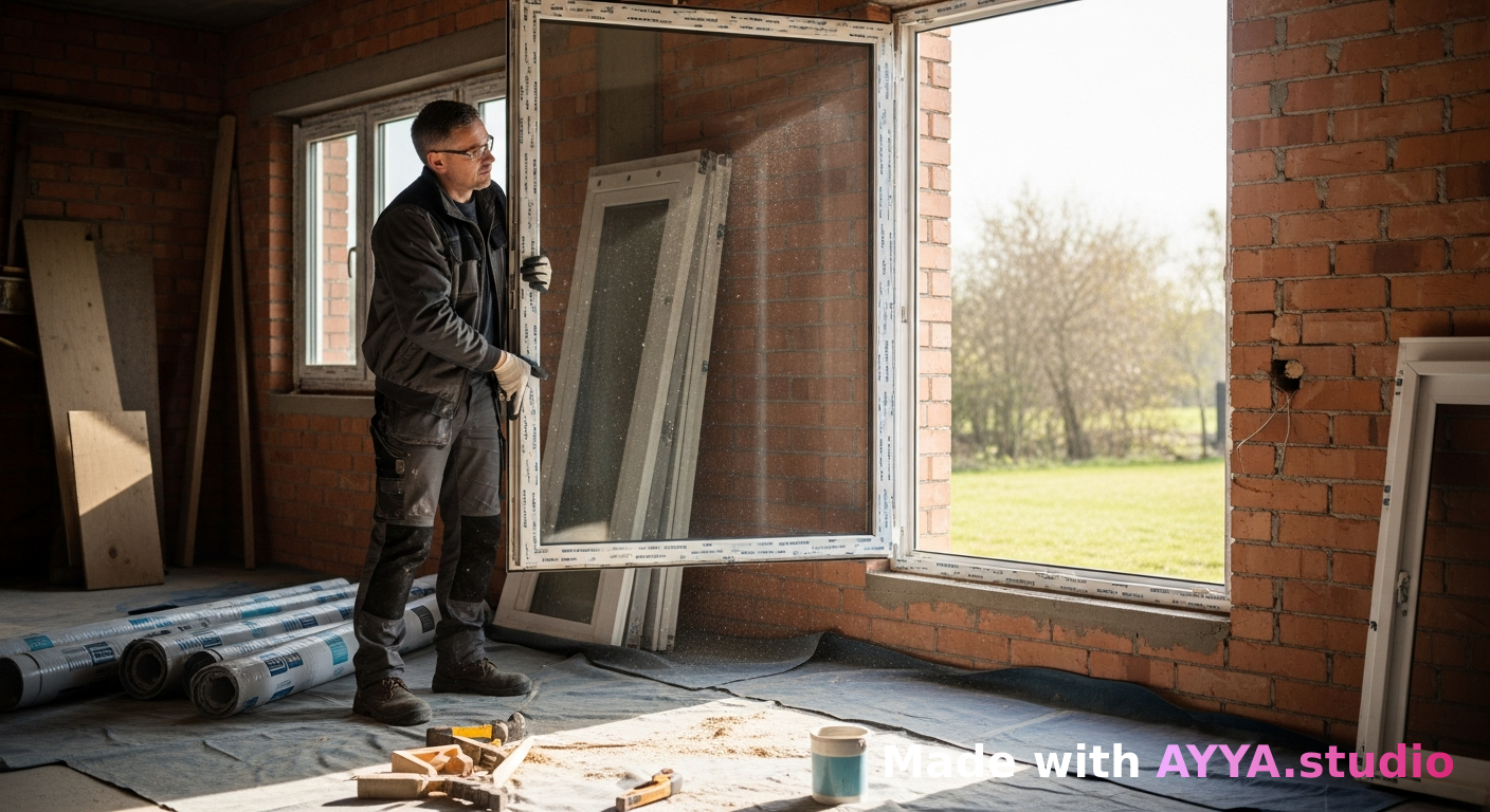A seasoned installer, clad in a practical work jacket and sturdy gloves, meti...