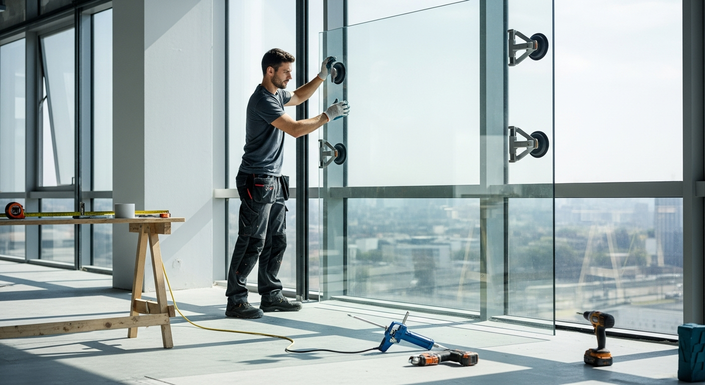 An installer, with a brow furrowed in deep concentration, meticulously guides...